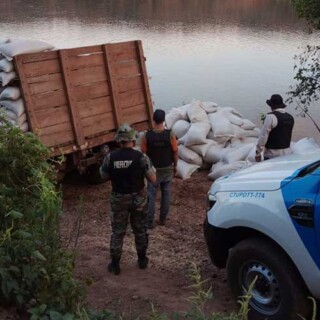 Asimismo, sobre el kilómetro 1.150,1 del mismo río, se aprehendió a otros dos individuos que descargaban bultos desde un camión y se consiguió secuestrar 121 bolsas de soja, con un peso total de 6.050 kilos.