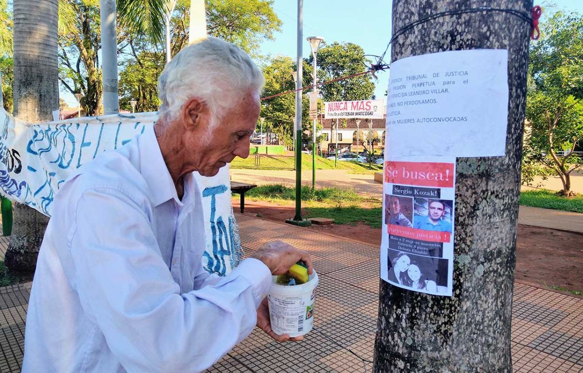 Por tanto, cerca de las 9 de la mañana marcharon, con carteles y un megáfono, con el acompañamiento de la agrupación Mujeres Autoconvocadas de Iguazú, con quienes también realizaron una pegatina en la plaza San Martín con la fotografía de Kozak para alertar a la comunidad acerca del caso y solicitando que ante cualquier información, la comuniquen a la policía.