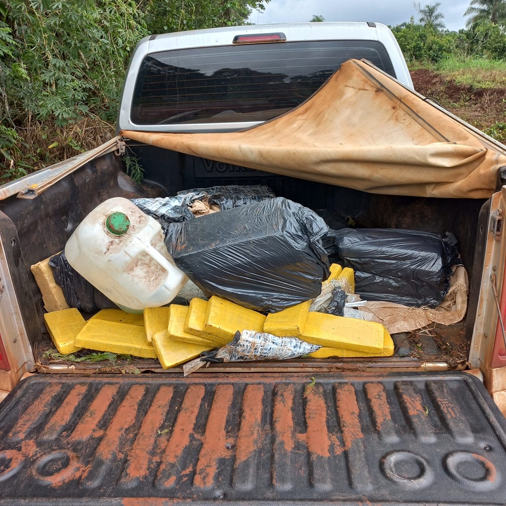 Los 133 kilos de marihuana se encontraron en la caja de carga del vehículo descartado en un camino de tierra en Puerto Esperanza.