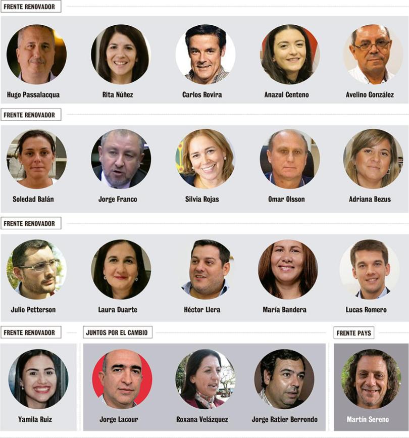Diputados Titulares del Frente Renovador: Hugo Passalacqua; Rita Nuñez; Carlos Eduardo Rovira; Anazul Centeno; Avelino González; Soledad Balan; Daniel Franco; Araceli Rojas; Ramón Olsson; Adriana Bezus; Julio Petterson; Laura Duarte; Héctor Kico Llera; Cristina Bandera; Lucas Romero; y Yamila Ruiz.