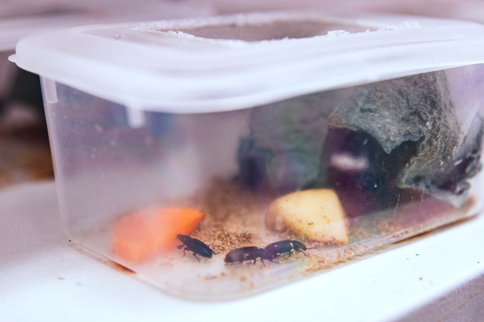 El laboratorio cuenta con cámaras de cría donde se desarrollan distintas etapas del Tenebrio molitor, desde el huevo hasta el estado adulto. Se lleva un control minucioso de las condiciones ambientales para garantizar una población estable y homogénea, esencial para realizar ensayos experimentales. En este espacio también se llevan a cabo pruebas con hongos entomopatógenos como Beauveria bassiana, evaluando su potencial como bioinsecticida y su impacto sobre diversas especies de insectos plaga.