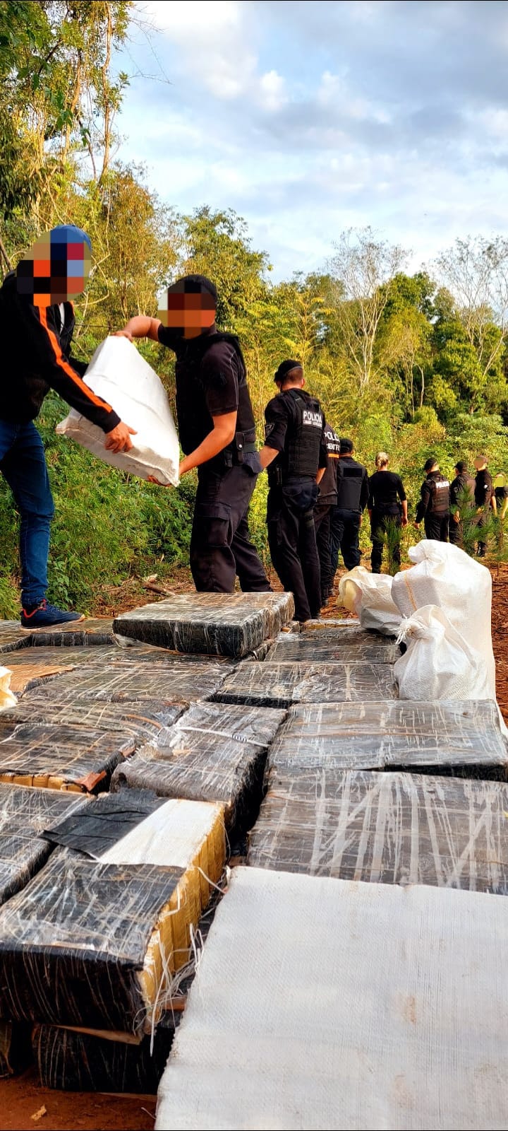 El importante despliegue, que tuvo lugar ayer a horas del mediodía en el paraje km 4 de la localidad de Garuhapé-Mí, resulto con la incautación de 5.735 kilogramos de marihuana prensada.