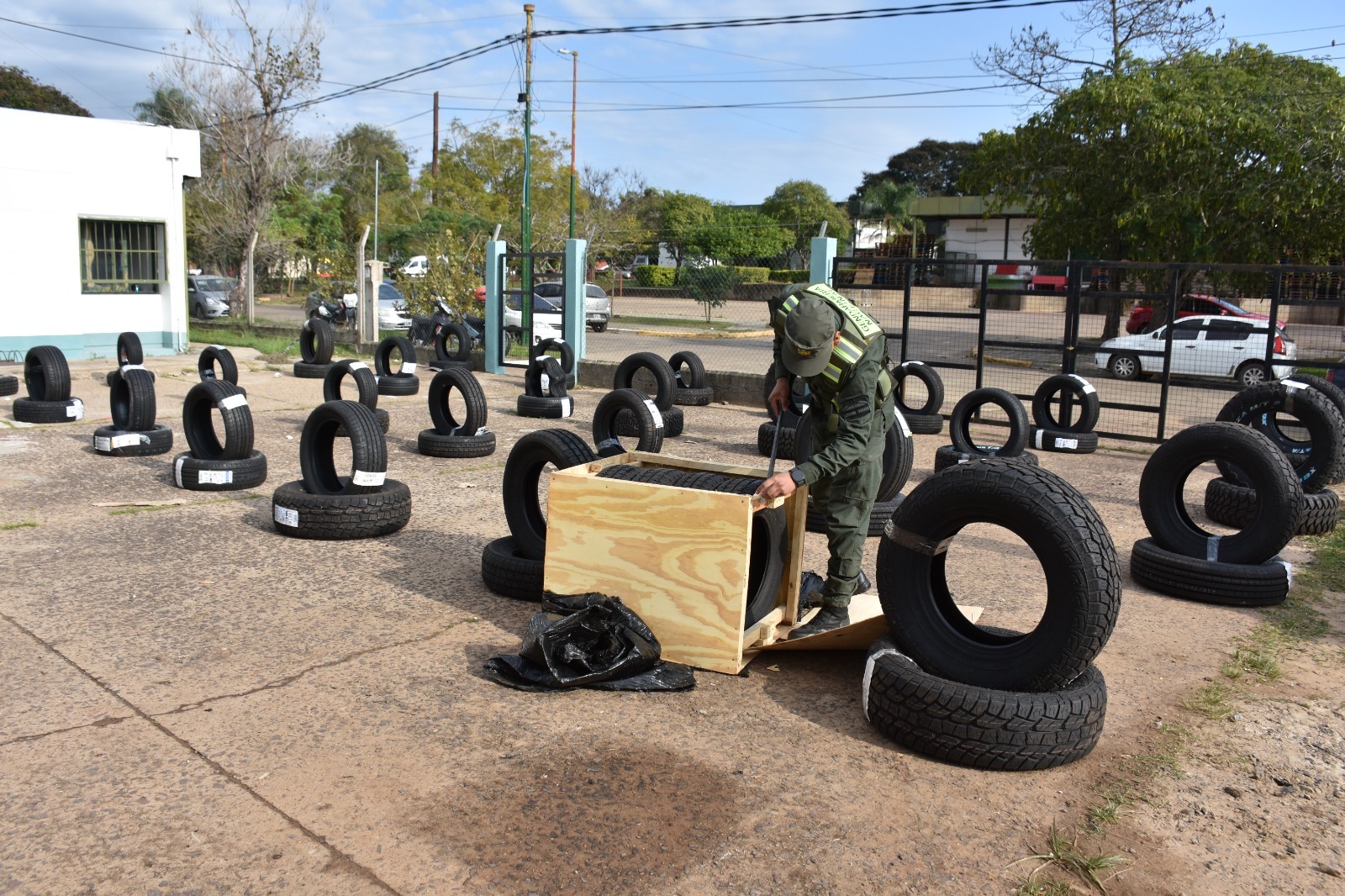 Efectivos de Gendarmería hallaron neumáticos dentro de encomiendas interdictadas.