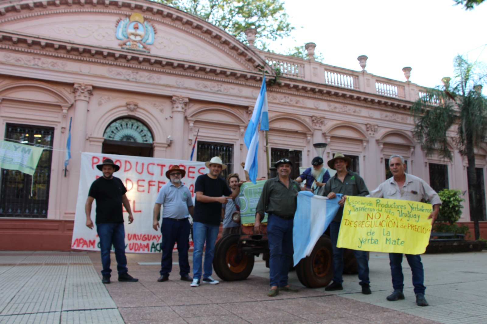 Muy temprano y tras detenerse por unos minutos frente a la sede del INYM, por calle Rivadavia, “el tractor yerbatero” fue estacionado en el mismo lugar que dio origen a la Institución en los años 2001 y 2002, cuando miles de trabajadores provenientes de distintos lugares de Misiones confluyeron con sus manifestaciones y tractores en el lugar, lo que se conoció como el Tractorazo. El rodado permaneció por varias horas, hasta que fue retirado y resguardado, a la espera de una próxima puesta en escena, en tiempo y lugar a determinar, según el plan de lucha de las organizaciones de productores.
