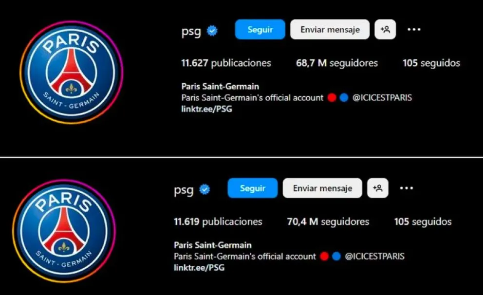 La merma de seguidores del París Saint Germain en su cuenta de Instagram (Foto: Captura)