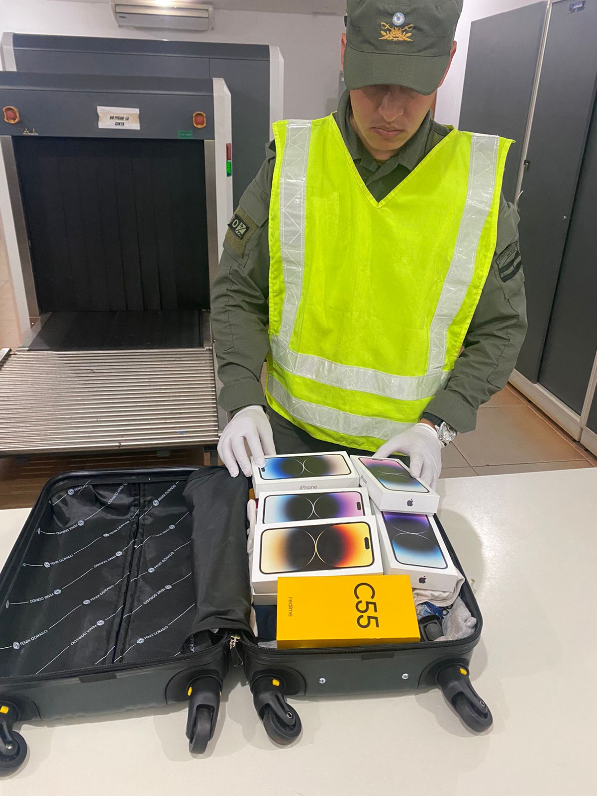 Producto de la requisa sobre la bodega, y habiendo hecho uso del scanner sobre piezas de equipaje al azar, se observó que una de ellas contenía varios elementos que, conforme las imágenes obtenidas, serían compatibles con teléfonos celulares.