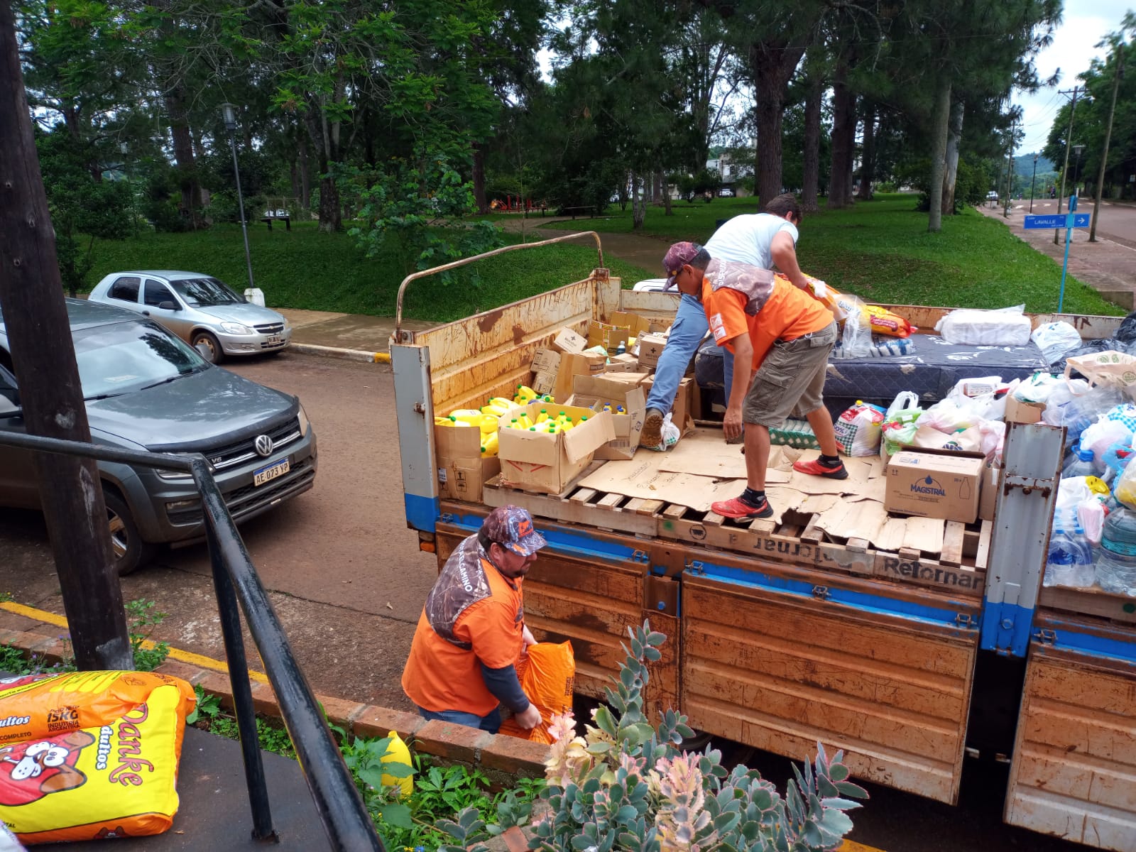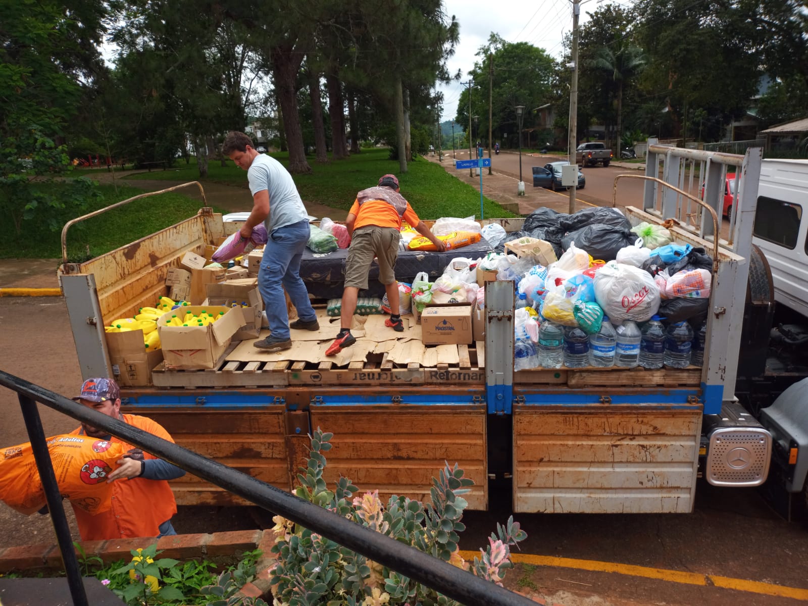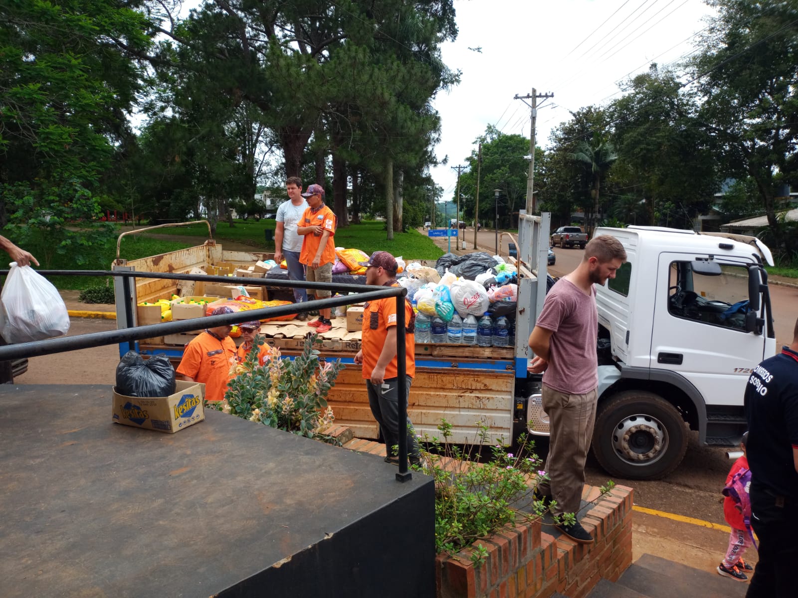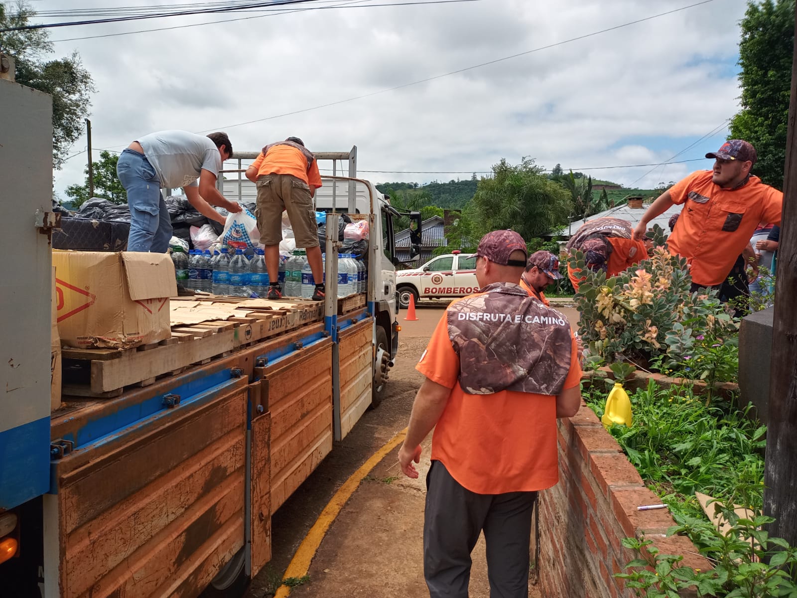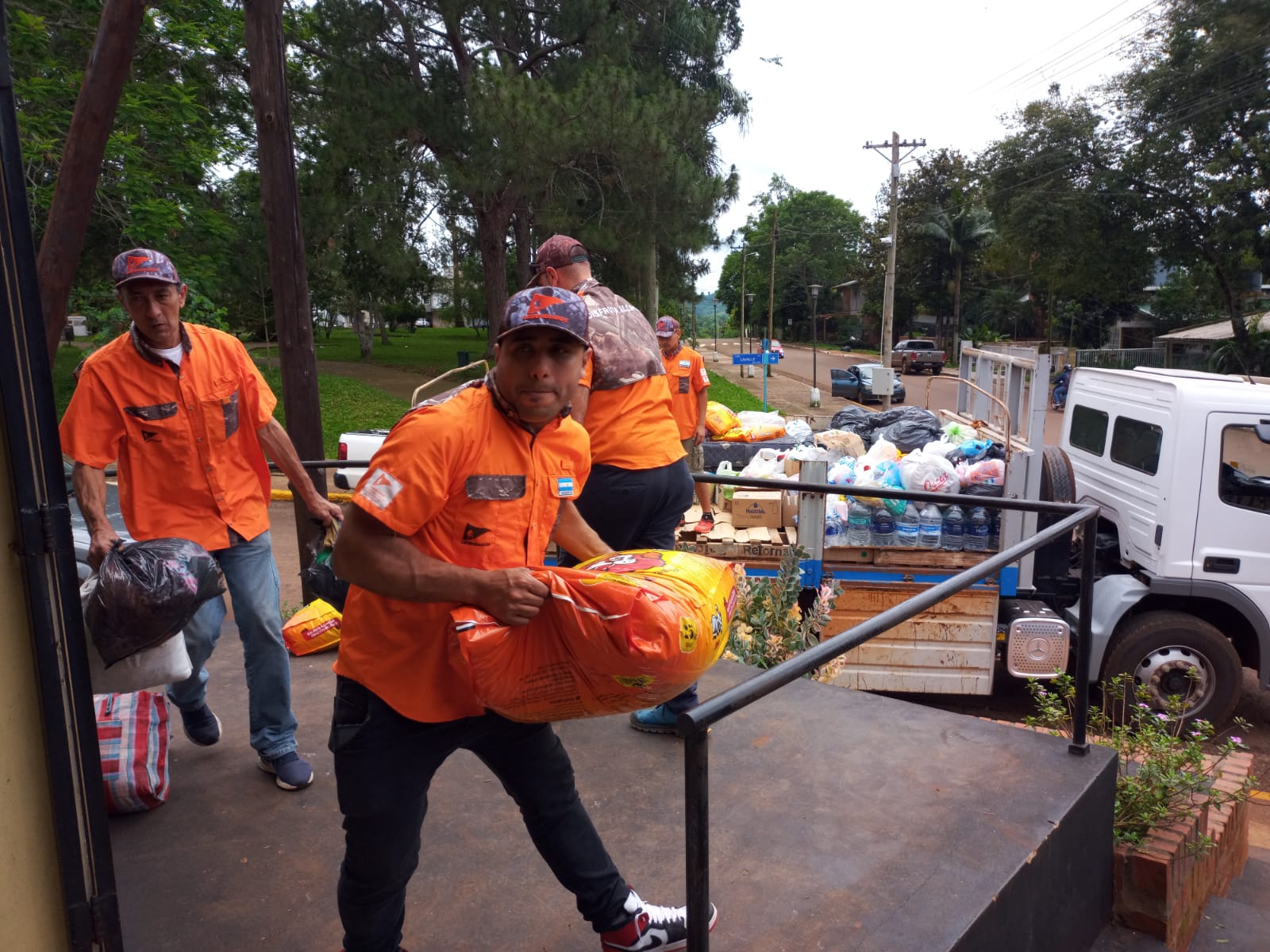Nolasco señaló que "esta mañana arrancaron a las 6 de la mañana los hermanos de Posadas y fuimos juntamos y trajimos ocho camionetas con ropa, mercaderías”.