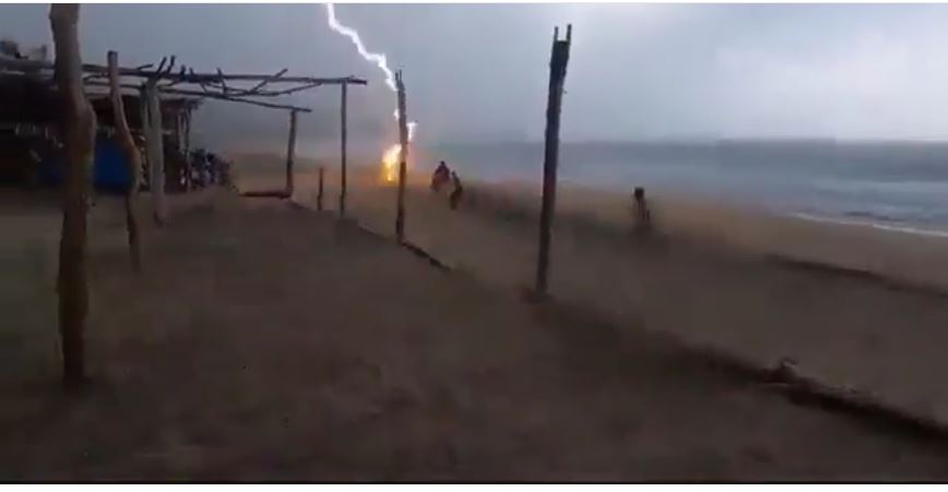Impactante video en el que se ve como dos personas son alcanzadas por un rayo en una playa de México