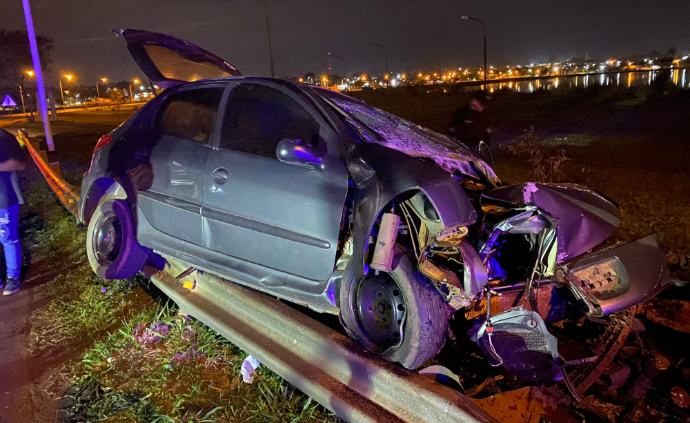 En el lugar, un automóvil Peugeot 206 al mando de un hombre, por razones que se investigan, perdió el control del auto y despistó sobre un margen de la avenida, llevándose puesto el guardarraíl e impactando contra un poste de hormigón, según la policía.