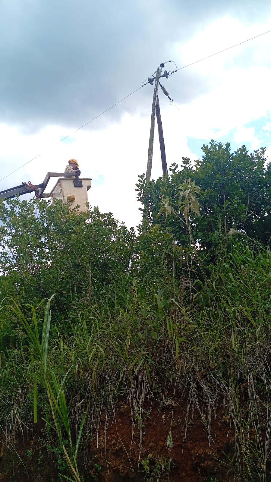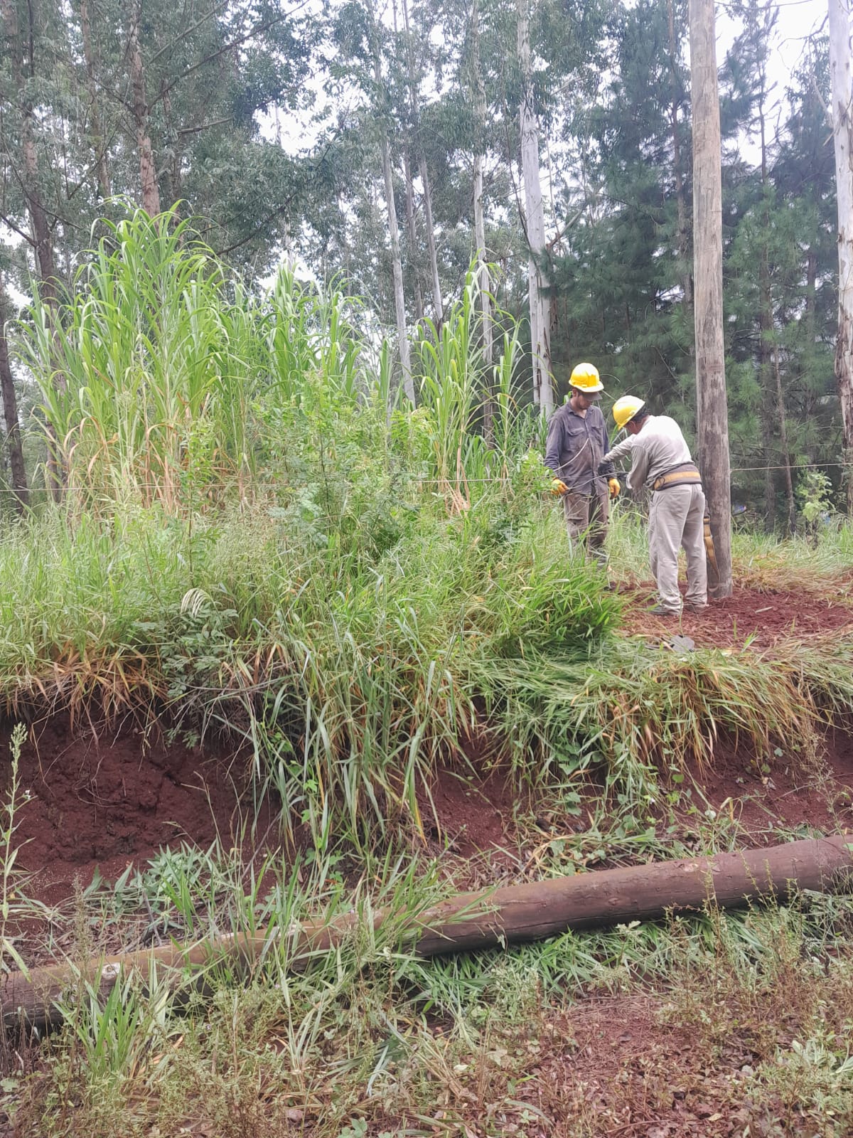 Con colaboración de la Municipalidad y compromiso de los propios vecinos, se lleva a cabo una tarea de limpieza de las líneas que atraviesan grandes extensiones de predios privados, algunas de las cuales se vieron afectadas por las últimas tormentas y el efecto de plantaciones de eucaliptos y pinos que interfieren con la traza.