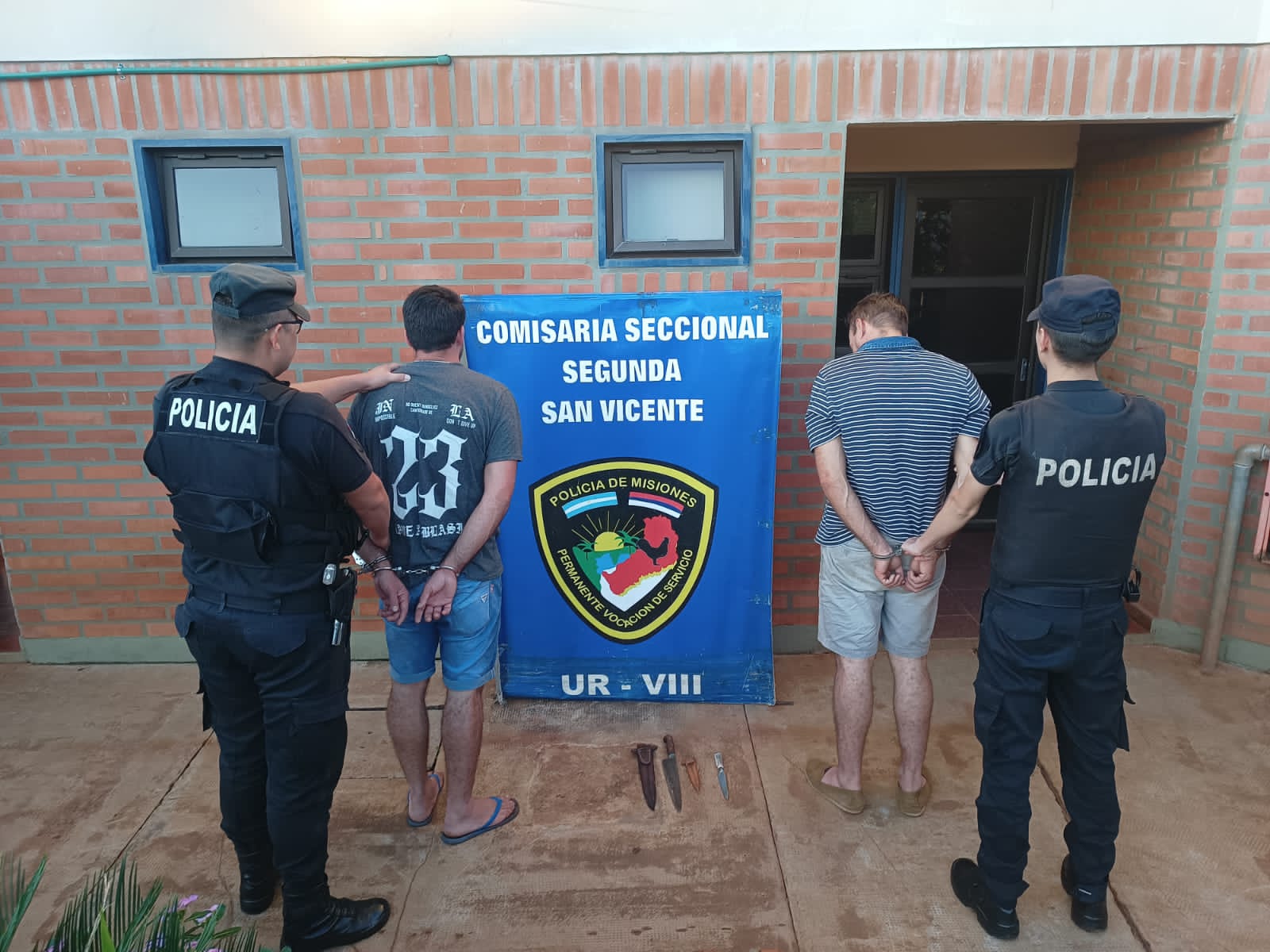 Tras un operativo de búsqueda, los sospechosos, dos hermanos identificados como Diego T. de 36 años y Cristian T. de 33 años, fueron localizados por las autoridades escondidos entre malezas cercanas al lugar y les secuestraron de su poder dos cuchillos.