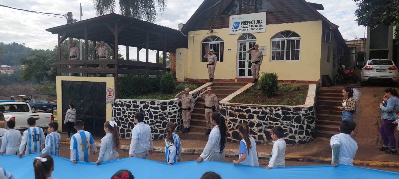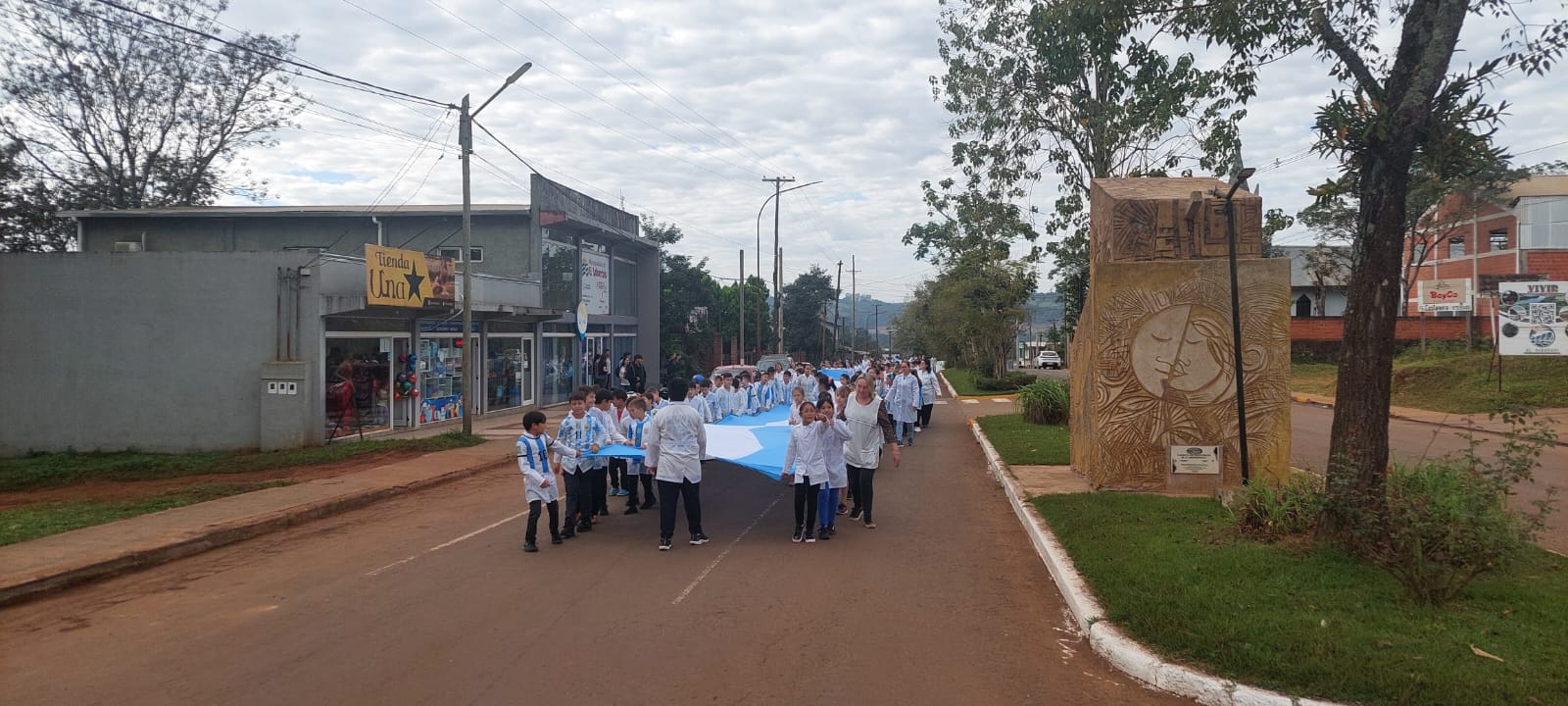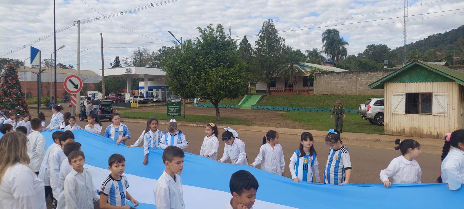 Las calles de El Soberbio se tiñeron este martes de celeste y blanco gracias a una movida que lleva a cabo la Escuela N° 740 de esta ciudad, en el marco de actividades por el Día de la Bandera.