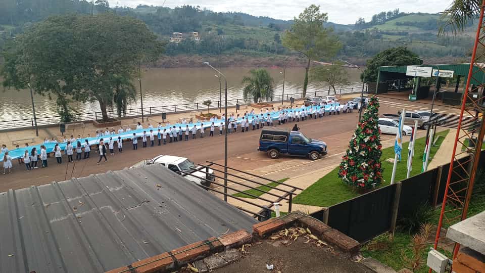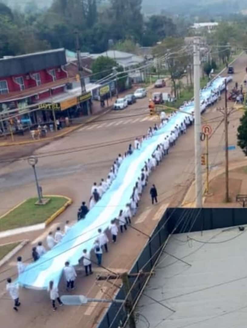 Una bandera Argentina de 120 metros “abrazó” la ciudad de El Soberbio