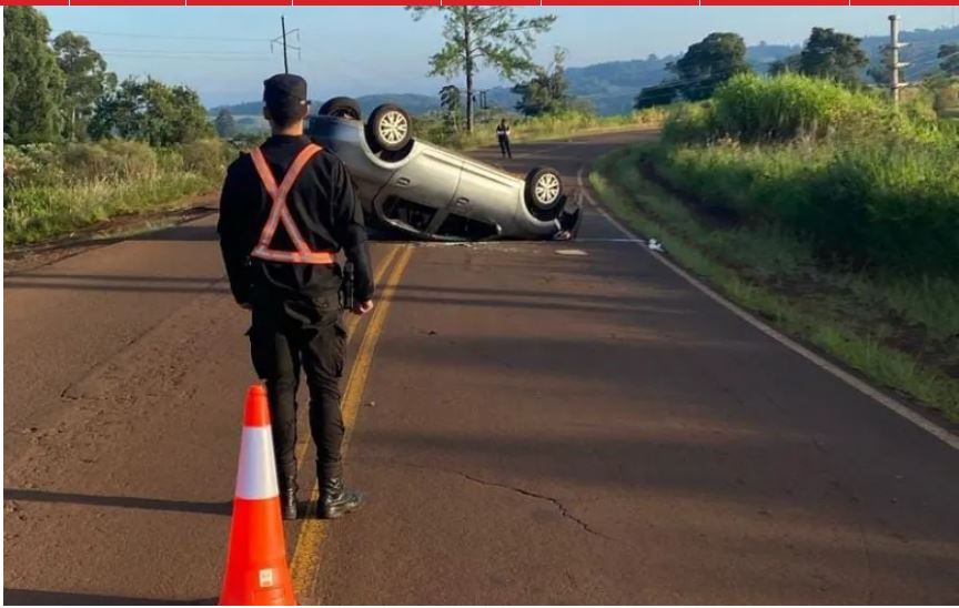 El Soberbio: conductor alcoholizado volcó y dejó su vehículo invertido en la ruta